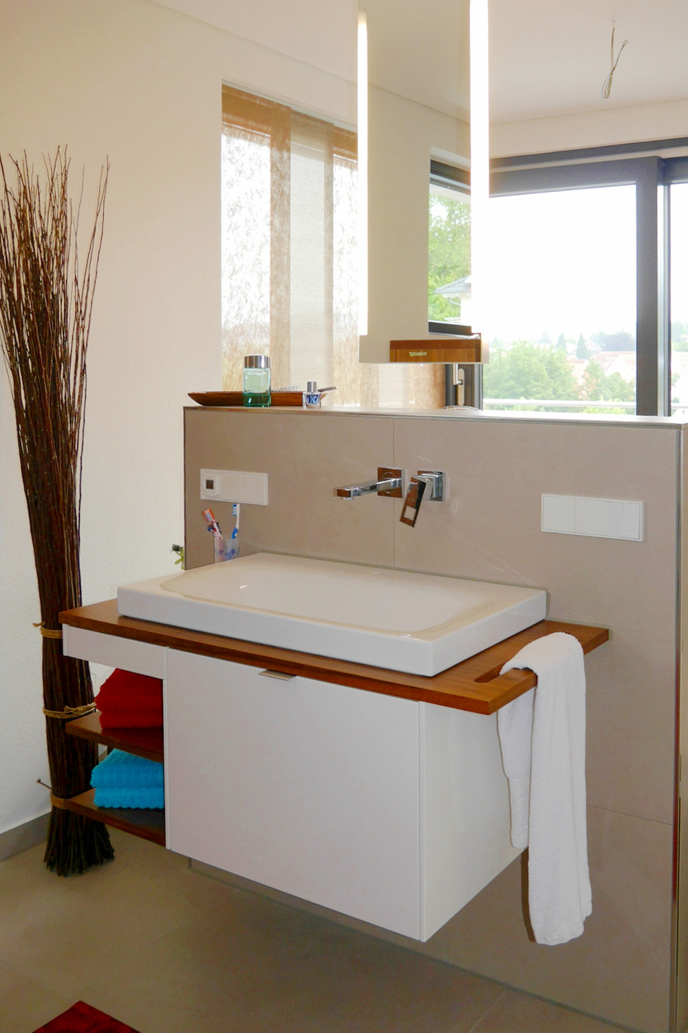 Das hochwertige Badezimmersortiment von Hartmann WOHNfühlen reicht vom freischwebenden Waschtischunterbau über den Spiegelschrank bis hin zu Einbauschränken. Unsere Schreiner kreieren zudem moderne Designs für Bad und Toilette. Für stimmungsvolle Akzente sorgt die integrierte Beleuchtung und rückt damit zum Beispiel Ihr kleines Gästebad oder Ihre Gästetoilette ins richtige Licht. Ein bleibender Eindruck bei Ihren Besuchern ist so gut wie sicher.