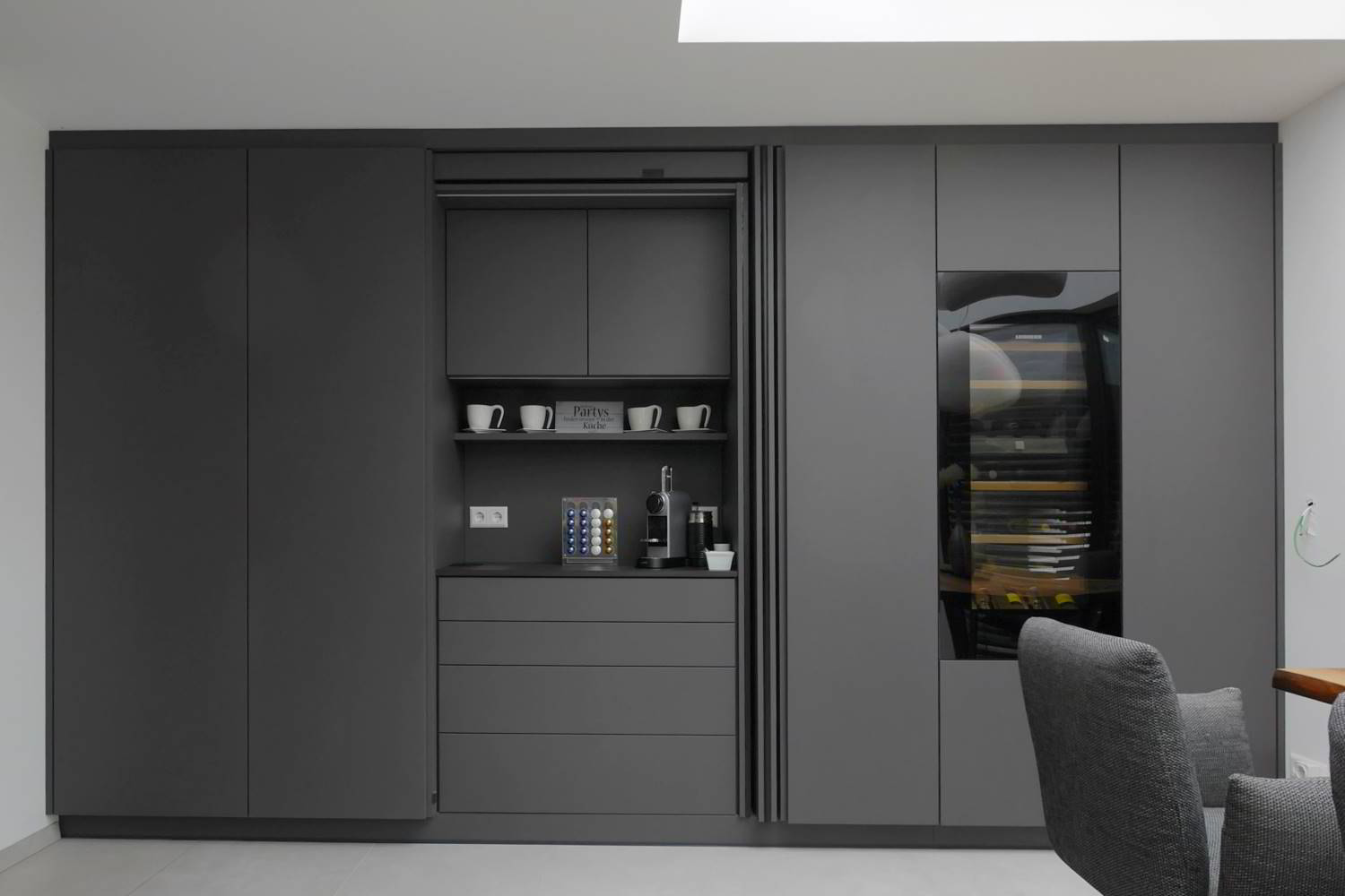 Die Kombination mit passenden Elektrogeräten von Siemens, Miele, Liebherr und Co., schöner Akzentbeleuchtung und pfiffigen Detaillösungen macht das Kochen zum puren Vergnügen.