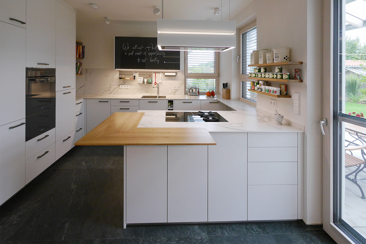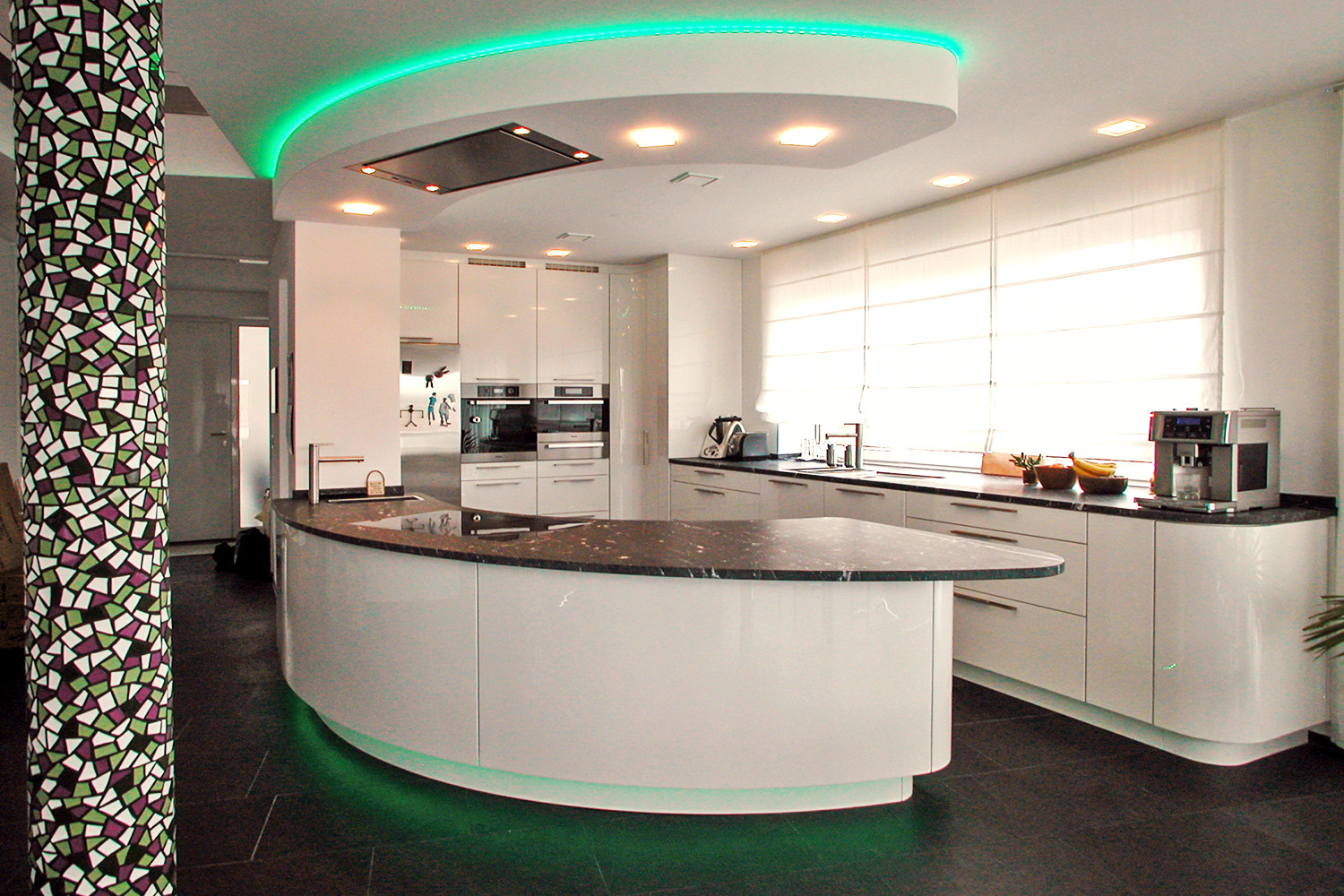 Durch unsere durchdachten Raumkonzepte schaffen wir kurze Wege (z.B. zwischen Kühlschrank, Kochfeld, Backofen) in Ihrer Küche und kreieren so ein angenehmes Kocherlebnis. Natürlich berücksichtigen wir die Lichtverhältnisse in Ihrer Küche, um für bestmögliche Rahmenbedingungen beim Kochen und Spülen zu sorgen. Auch diverse Maßanfertigungen wie bspw. ein hochgesetzter Backofen oder Geschirrspüler können wir problemlos in Ihre Küche integrieren.