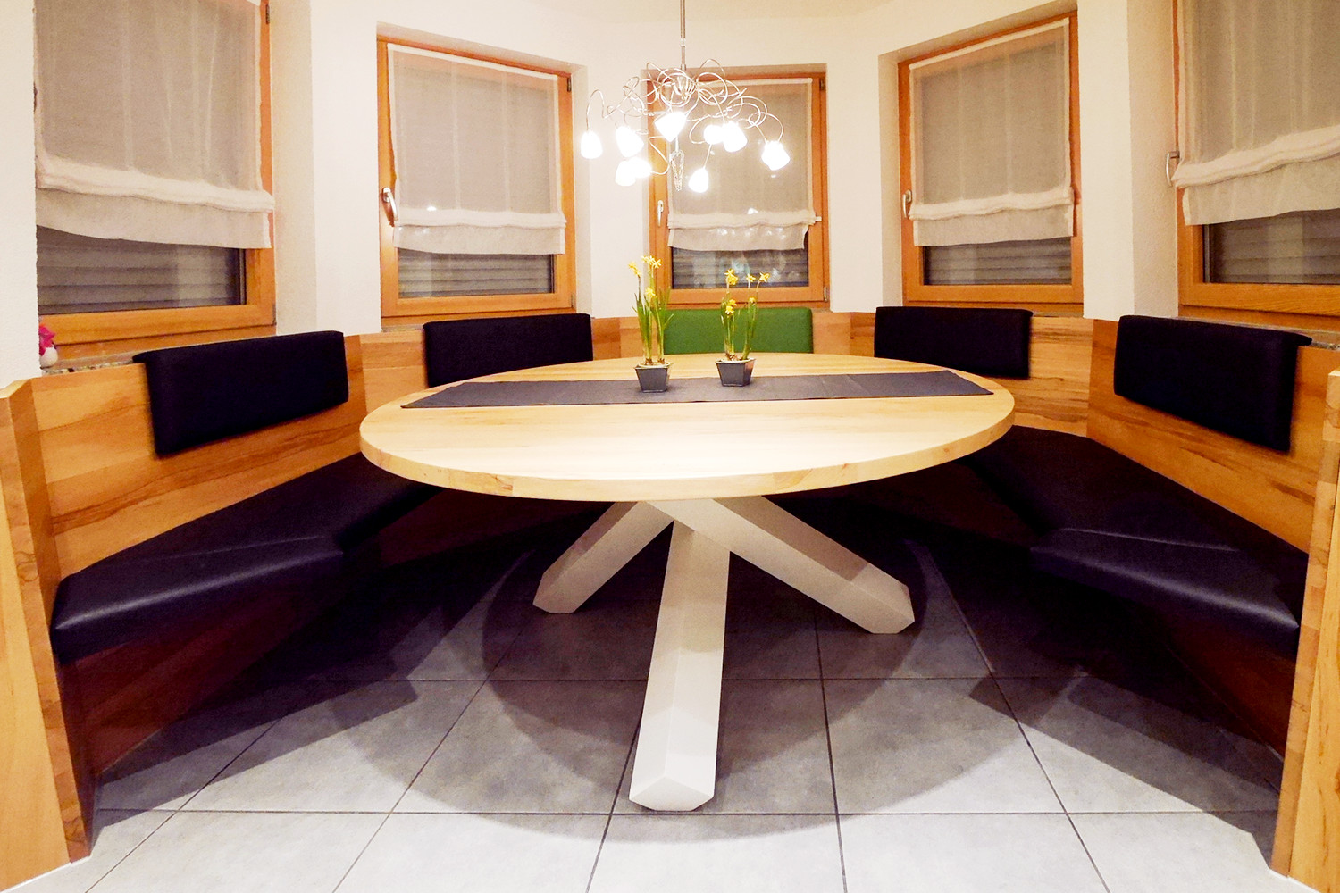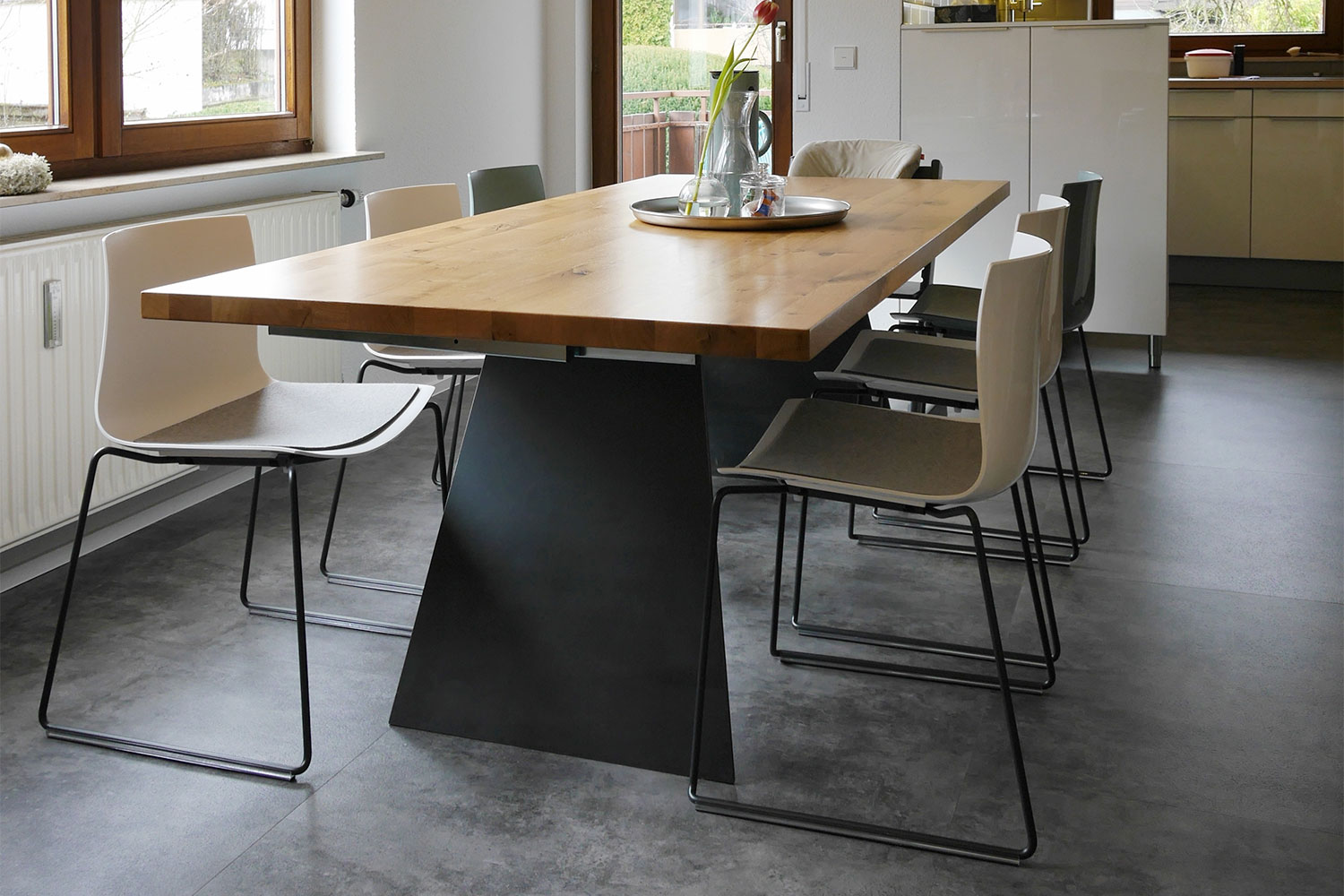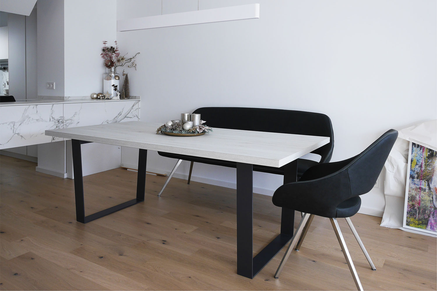 Auch für das Esszimmer entwerfen wir individuelle Holzbänke oder Esstische nach Maß. Passend zum Esstisch können Sie auch diverse Stühle und Lampen direkt über Hartmann WOHNfühlen beziehen.